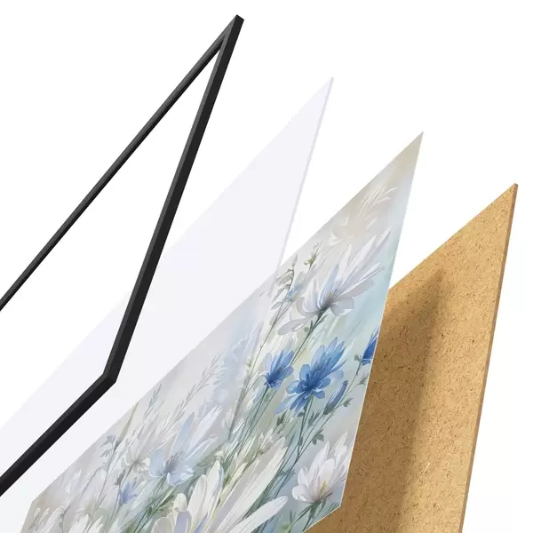 Das Poster besteht aus einem Rahmen, Plexiglas, einem gedruckten Bild und einer Rückwand aus Spanplatten. Dank der Halterungen auf der Rückseite kann das Poster sofort an die Wand gehängt werden.