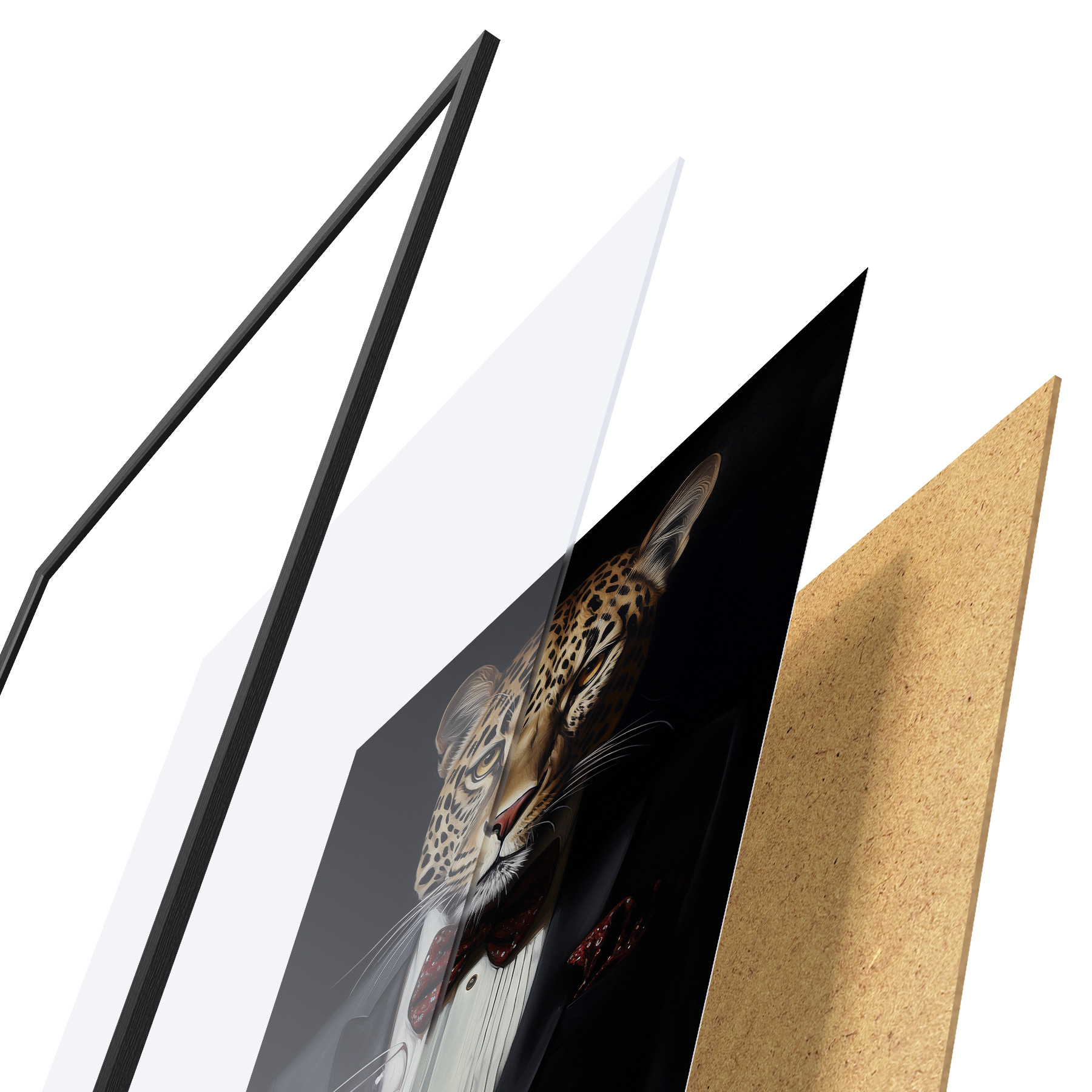 Das Poster besteht aus einem Rahmen, Plexiglas, einem gedruckten Bild und einer Rückwand aus Spanplatten. Dank der Halterungen auf der Rückseite kann das Poster sofort an die Wand gehängt werden.