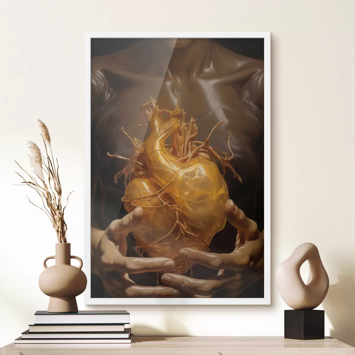 Das Poster besteht aus einem Rahmen, Plexiglas, einem gedruckten Bild und einer Rückwand aus Spanplatten. Dank der Halterungen auf der Rückseite kann das Poster sofort an die Wand gehängt werden.
