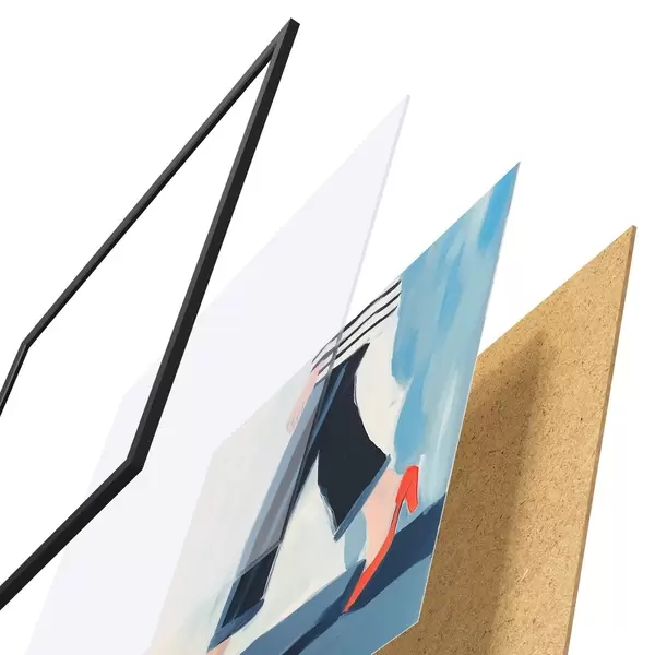 Das Poster besteht aus einem Rahmen, Plexiglas, einem gedruckten Bild und einer Rückwand aus Spanplatten. Dank der Halterungen auf der Rückseite kann das Poster sofort an die Wand gehängt werden.