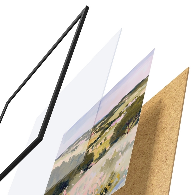 Das Poster besteht aus einem Rahmen, Plexiglas, einem gedruckten Bild und einer Rückwand aus Spanplatten. Dank der Halterungen auf der Rückseite kann das Poster sofort an die Wand gehängt werden.