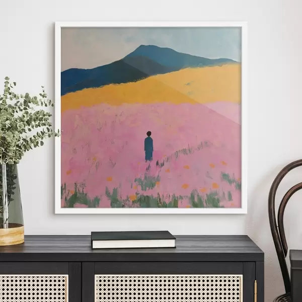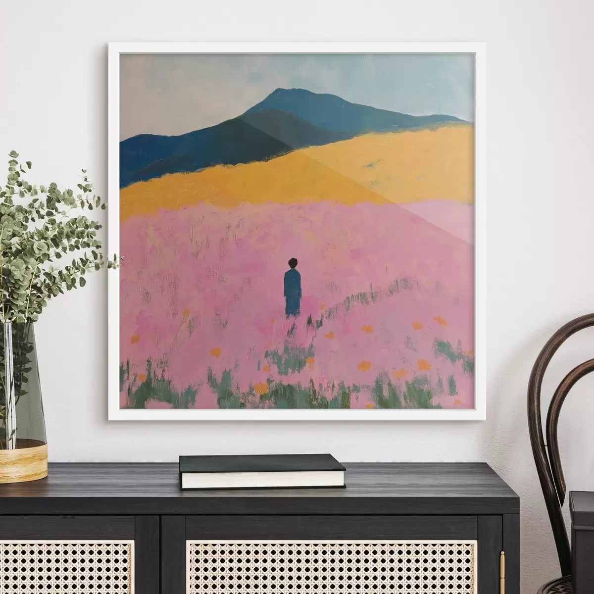 Poster Ein Mann in einem Feld mit rosa Blumen Nr f41164