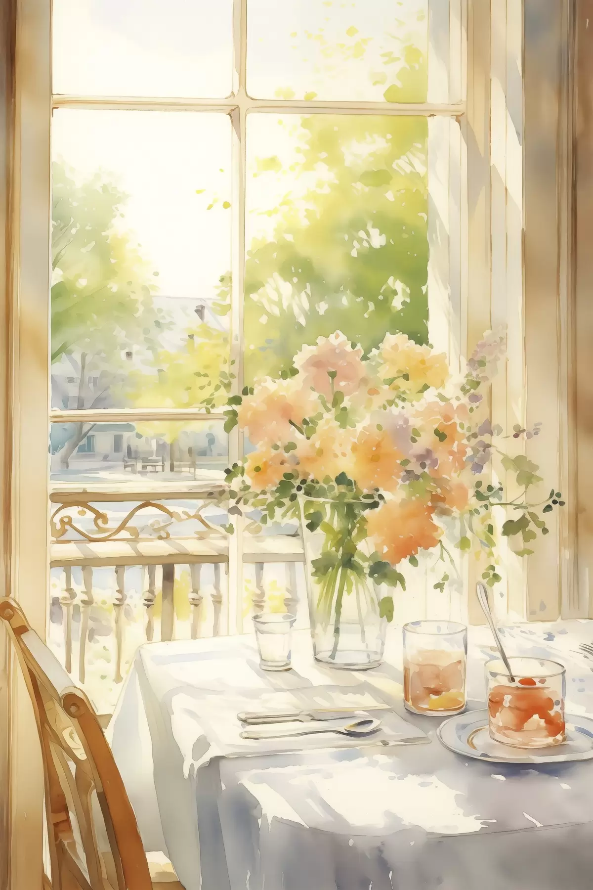 Poster Romantisches Abendessen, Aquarell, Boho-Stil, Blumen, Natur Nr f41165