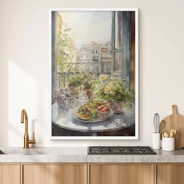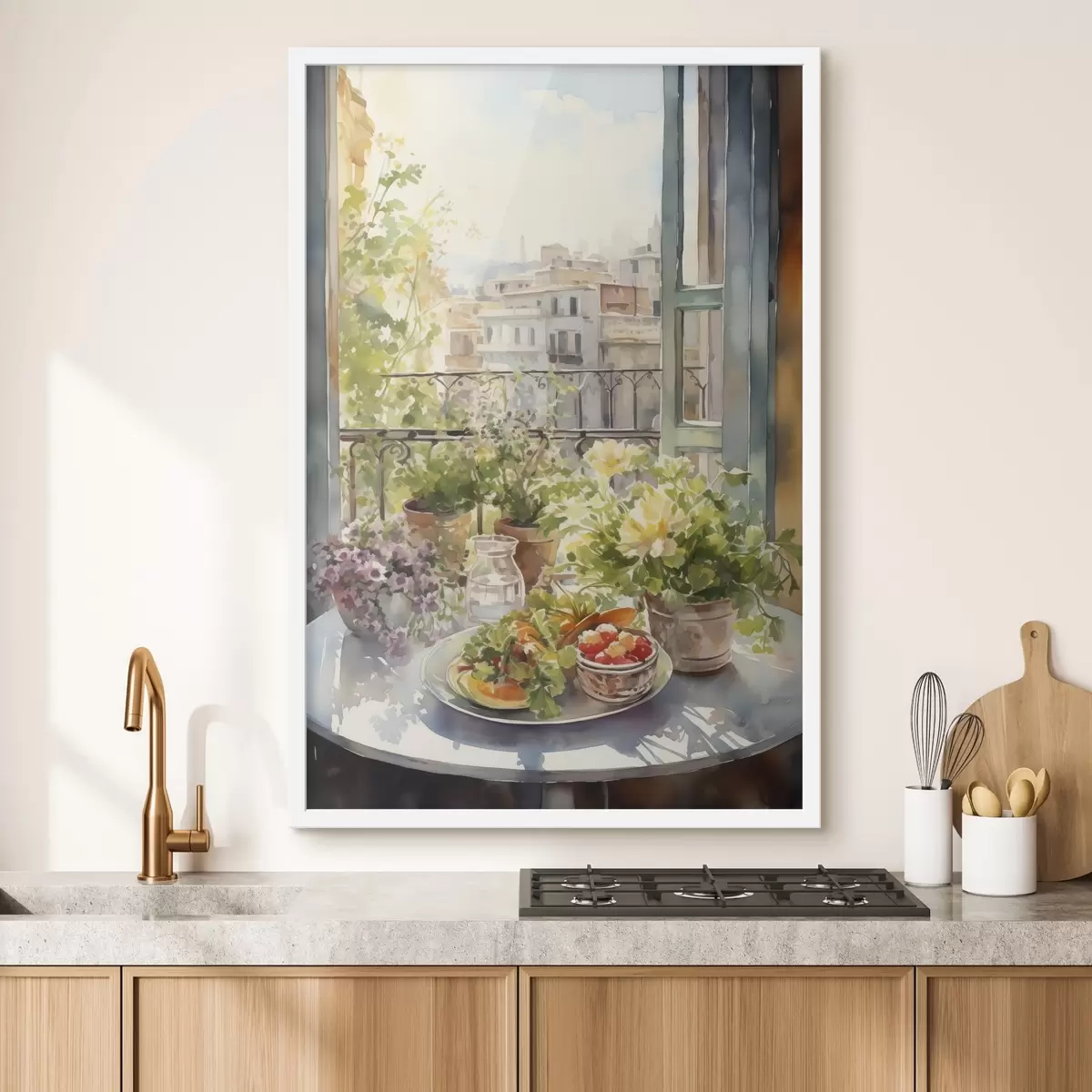 Poster Romantisches Abendessen mit Blick auf die Stadt, Aquarell, floral f41168