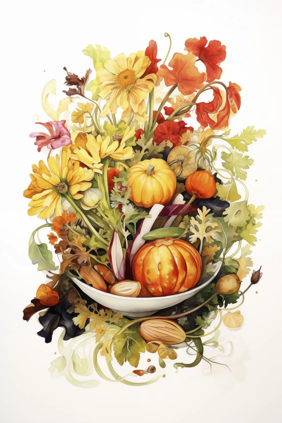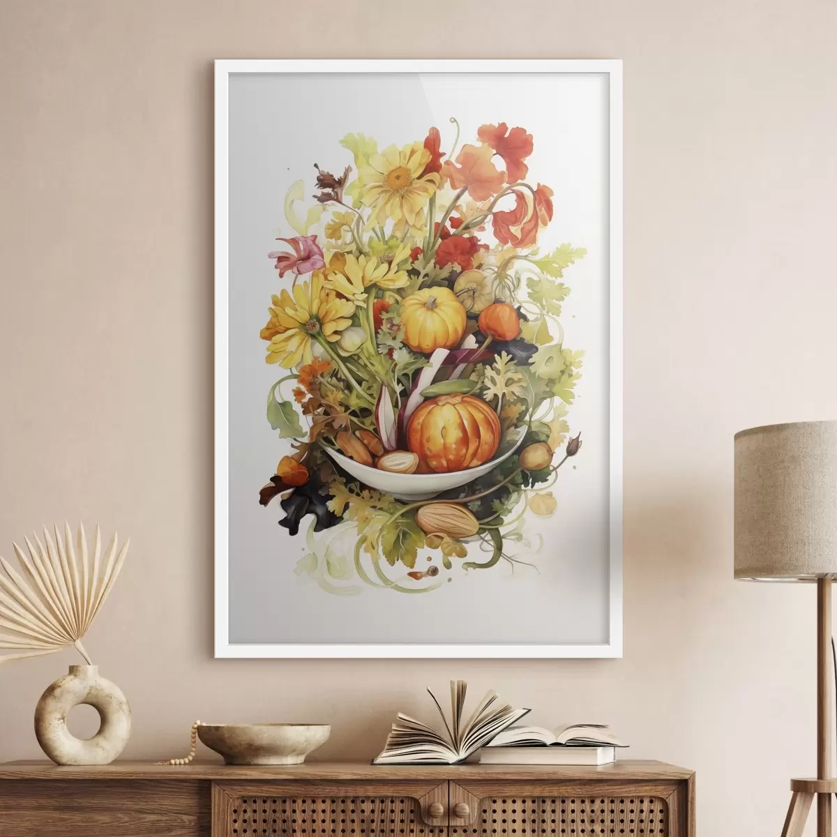 Poster Herbsternte, Aquarellgemüse, Kürbisse, Blumen Nr f41172