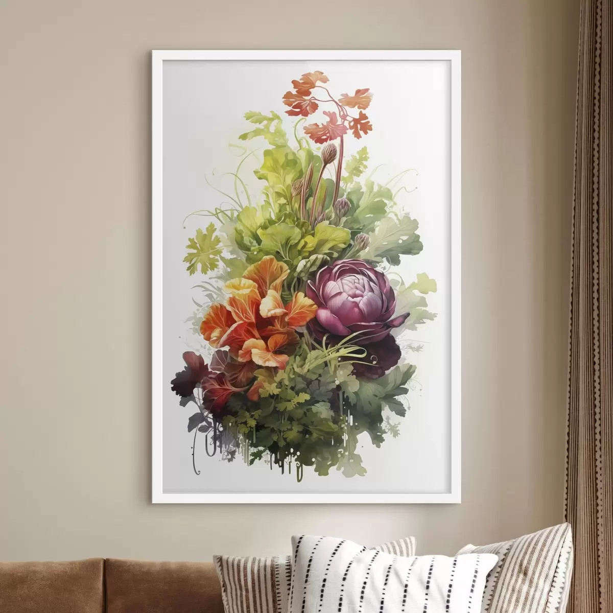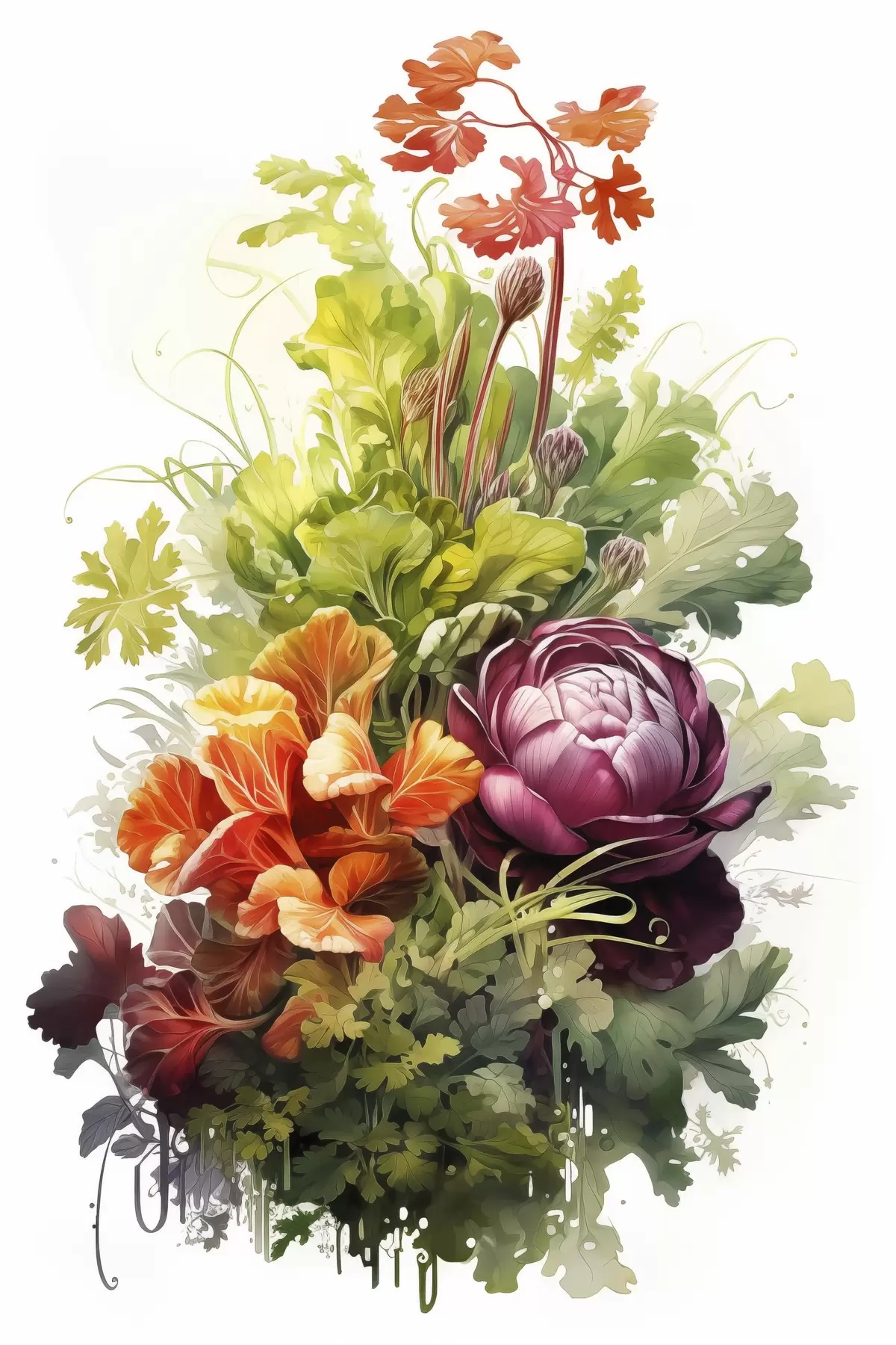 Poster Gemüseernte, Aquarell, Grünzeug, Blumen f41173