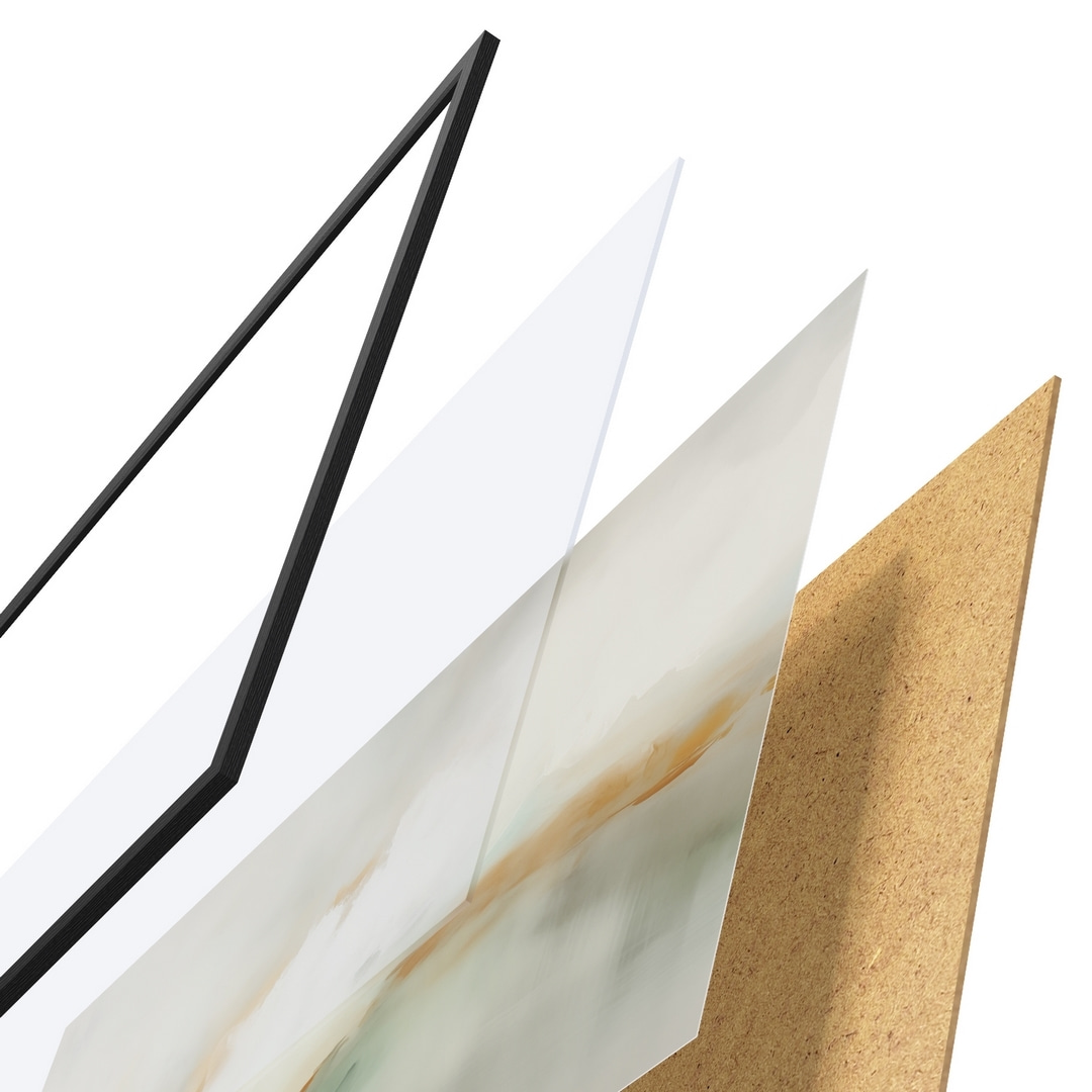 Das Poster besteht aus einem Rahmen, Plexiglas, einem gedruckten Bild und einer Rückwand aus Spanplatten. Dank der Halterungen auf der Rückseite kann das Poster sofort an die Wand gehängt werden.