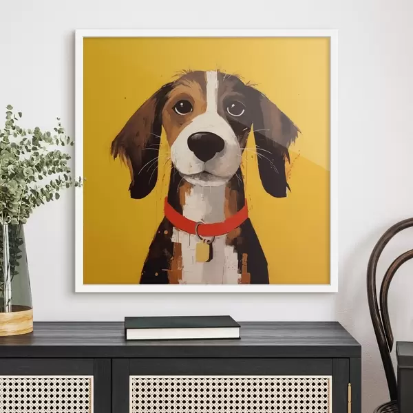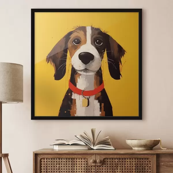 Poster Porträt eines Hundes auf gelbem Hintergrund Nr f41232