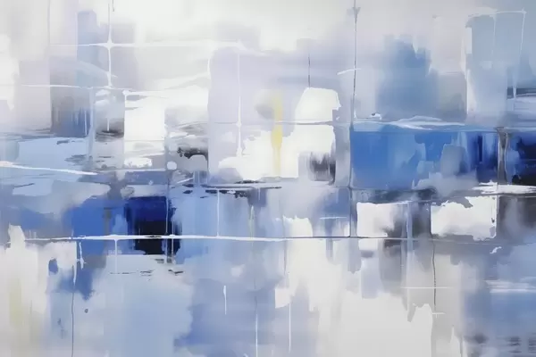 Poster Eine moderne Abstraktion in Blau-, Weiß- und Grautönen mit verschwommenen Linien und Formen Nr f41269
