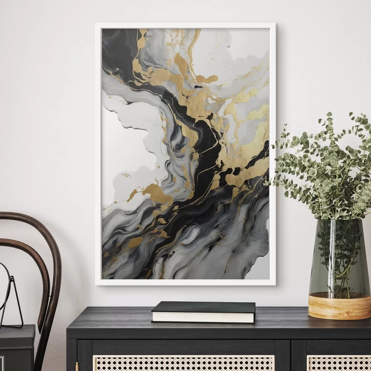 Poster Abstrakte Malerei in Aquarell mit schwarzen und gelben Farben f41290