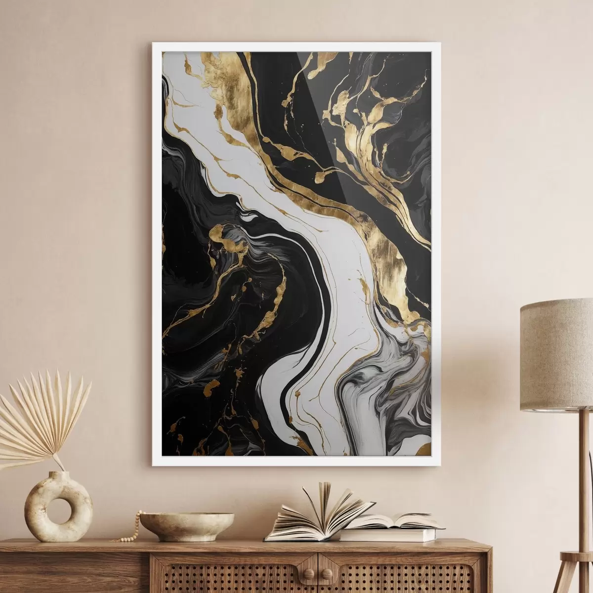 Poster Schwarz-weißes abstraktes Gemälde mit gelben Flecken Nr f41292