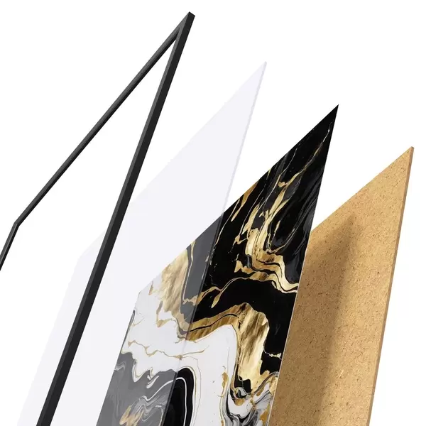 Das Poster besteht aus einem Rahmen, Plexiglas, einem gedruckten Bild und einer Rückwand aus Spanplatten. Dank der Halterungen auf der Rückseite kann das Poster sofort an die Wand gehängt werden.