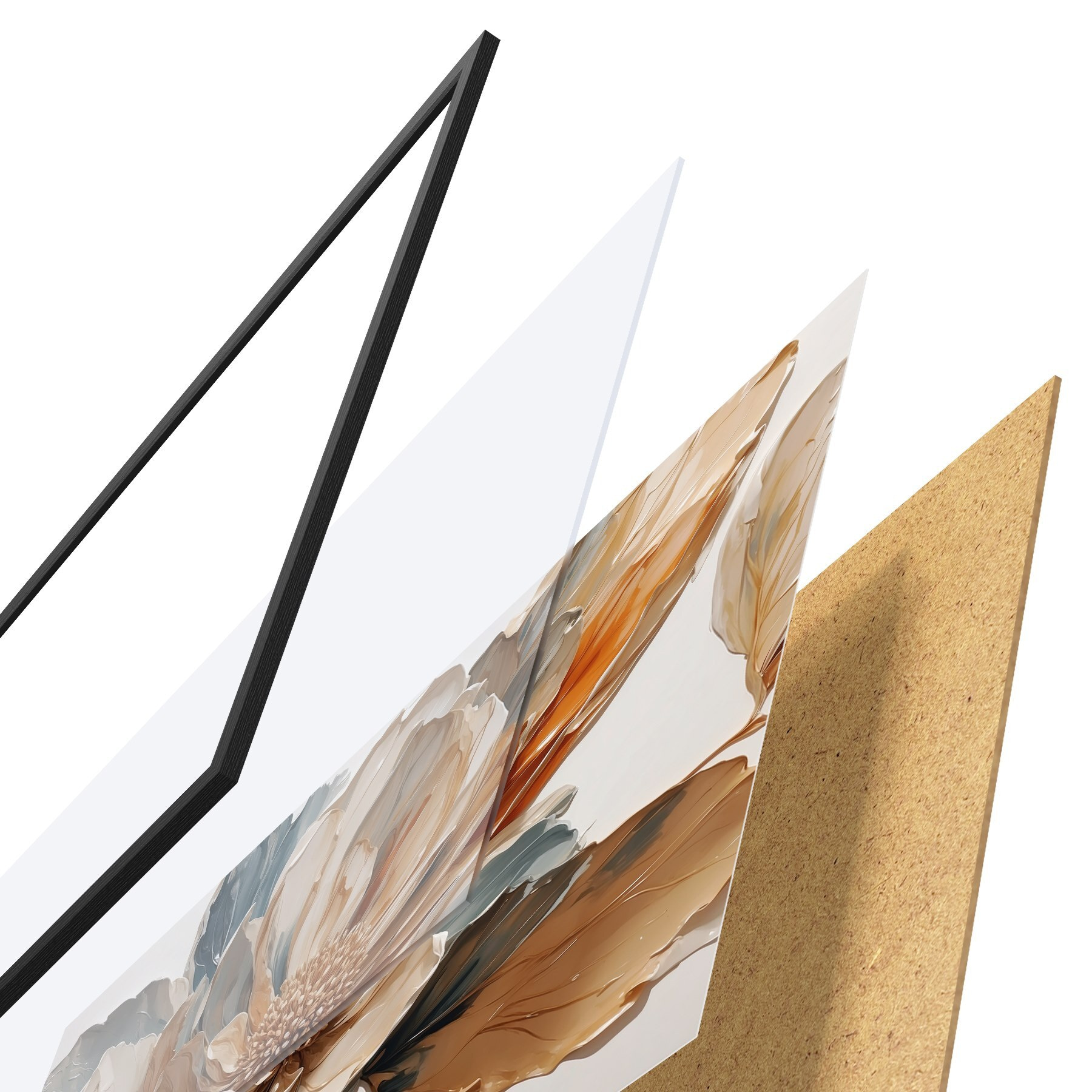 Das Poster besteht aus einem Rahmen, Plexiglas, einem gedruckten Bild und einer Rückwand aus Spanplatten. Dank der Halterungen auf der Rückseite kann das Poster sofort an die Wand gehängt werden.