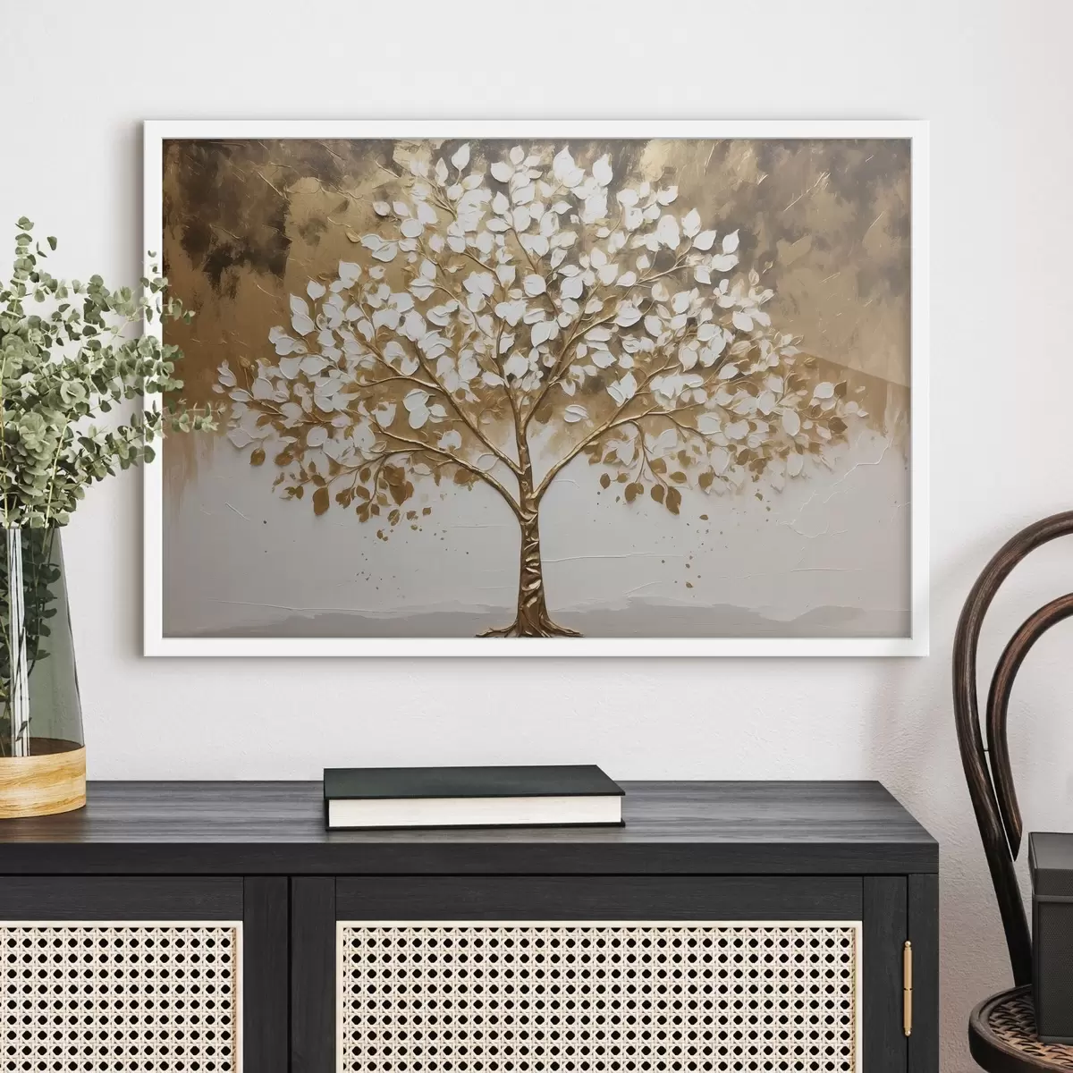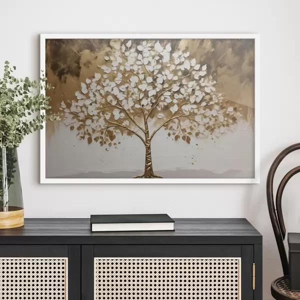 Poster Baum auf weißem und gelbem Hintergrund Nr f41307