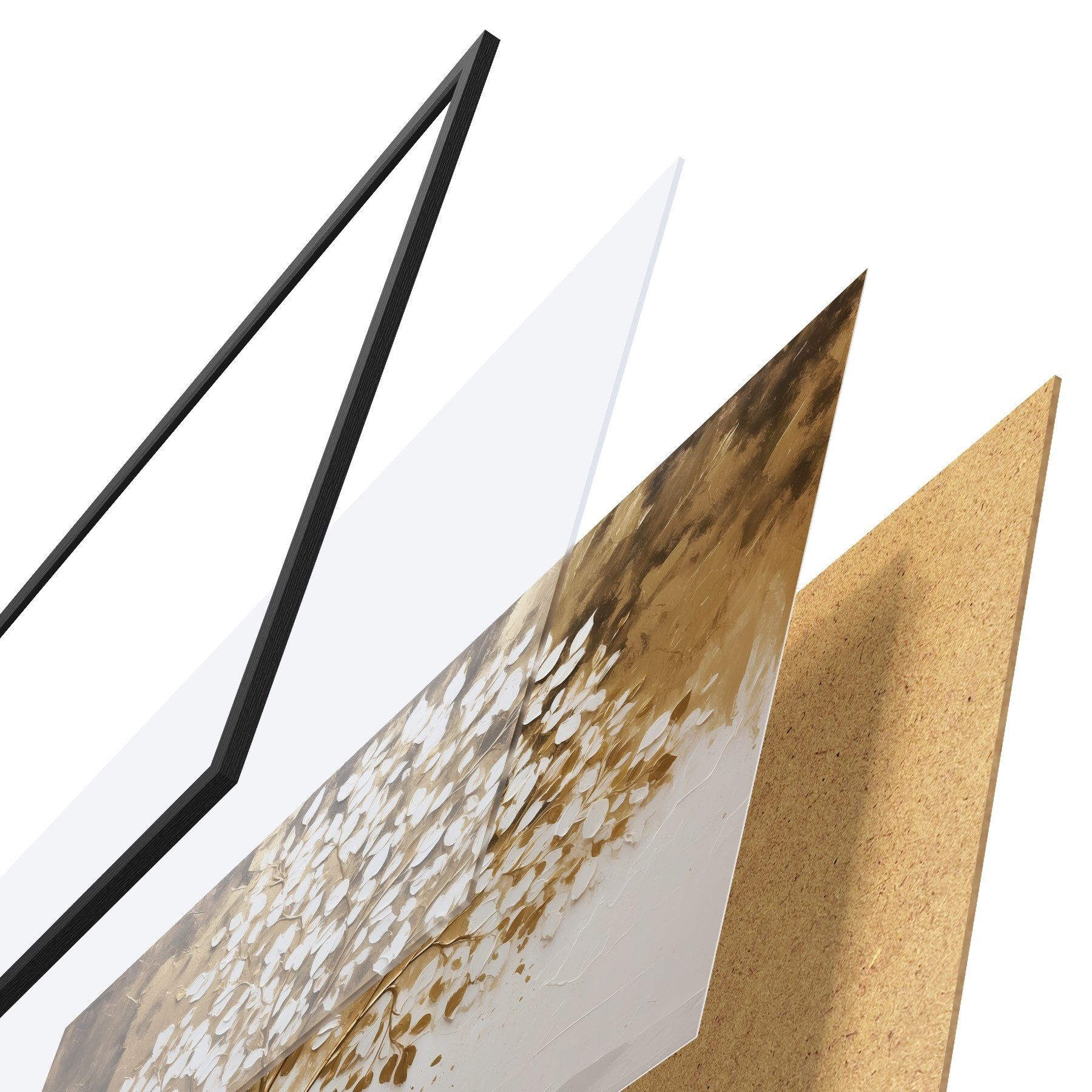Das Poster besteht aus einem Rahmen, Plexiglas, einem gedruckten Bild und einer Rückwand aus Spanplatten. Dank der Halterungen auf der Rückseite kann das Poster sofort an die Wand gehängt werden.