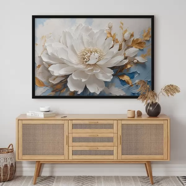 Poster Weiße Blume auf blau-weißem Hintergrund Nr f41311