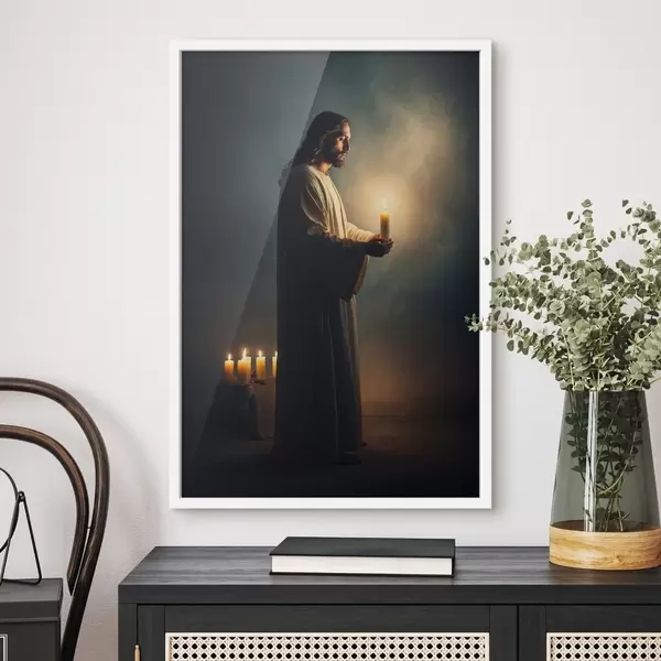 Poster Jesus Christus mit Kerze in der Dunkelheit f41315