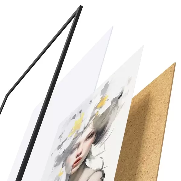Das Poster besteht aus einem Rahmen, Plexiglas, einem gedruckten Bild und einer Rückwand aus Spanplatten. Dank der Halterungen auf der Rückseite kann das Poster sofort an die Wand gehängt werden.
