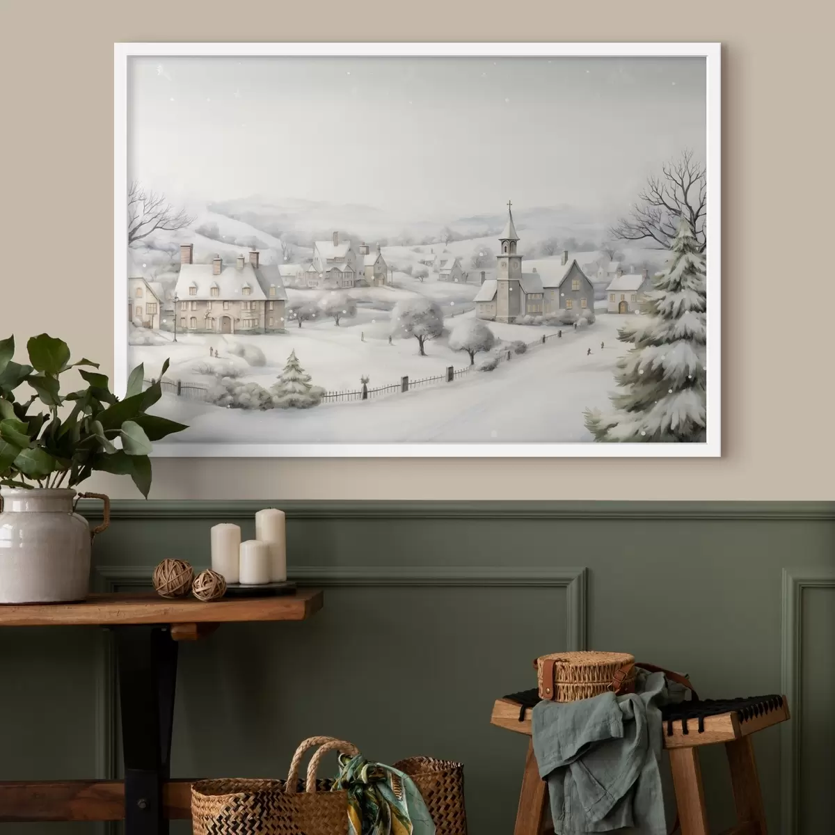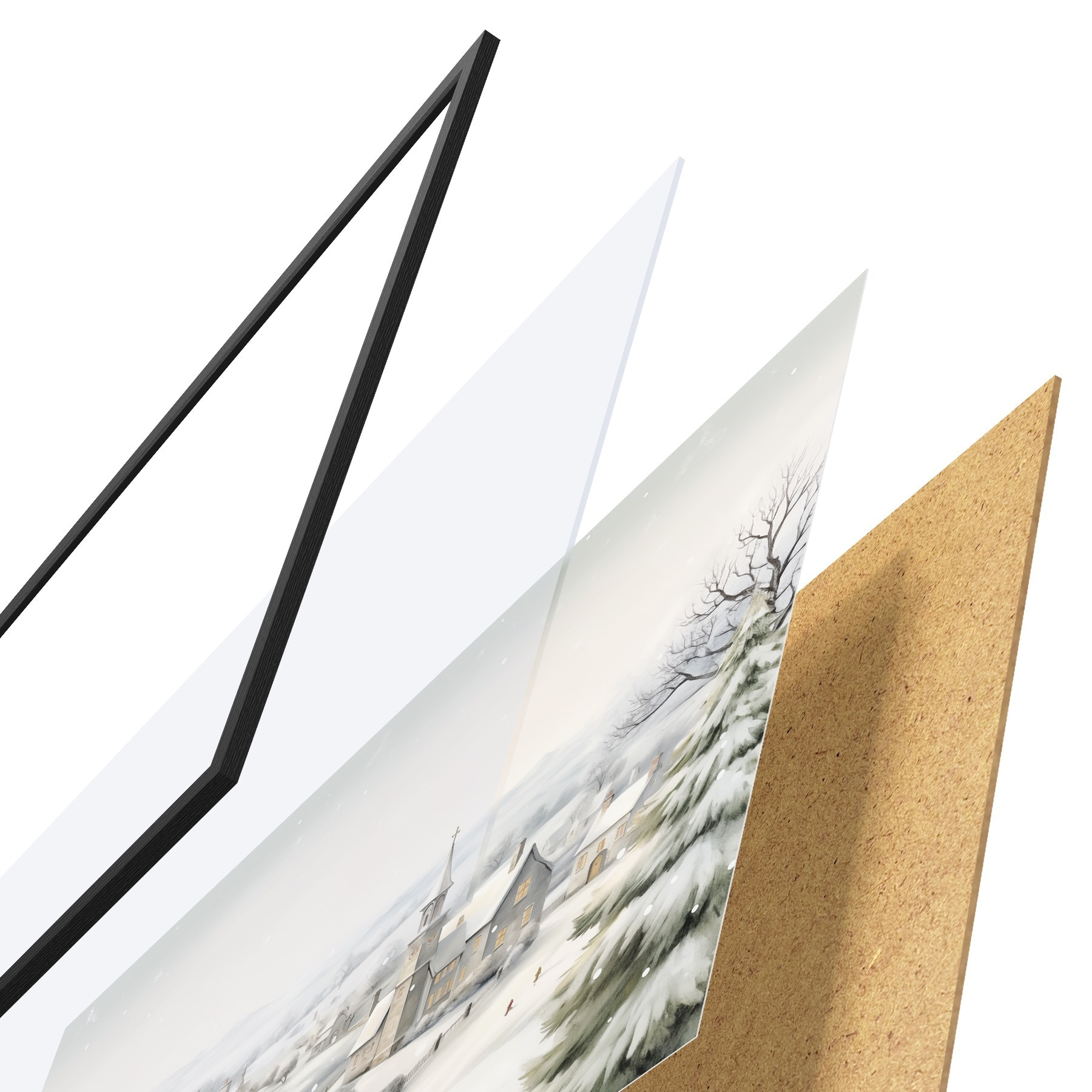 Poster Schöne Winterdorf, Bäume, Häuser, Aquarell, Berge Nr f41382