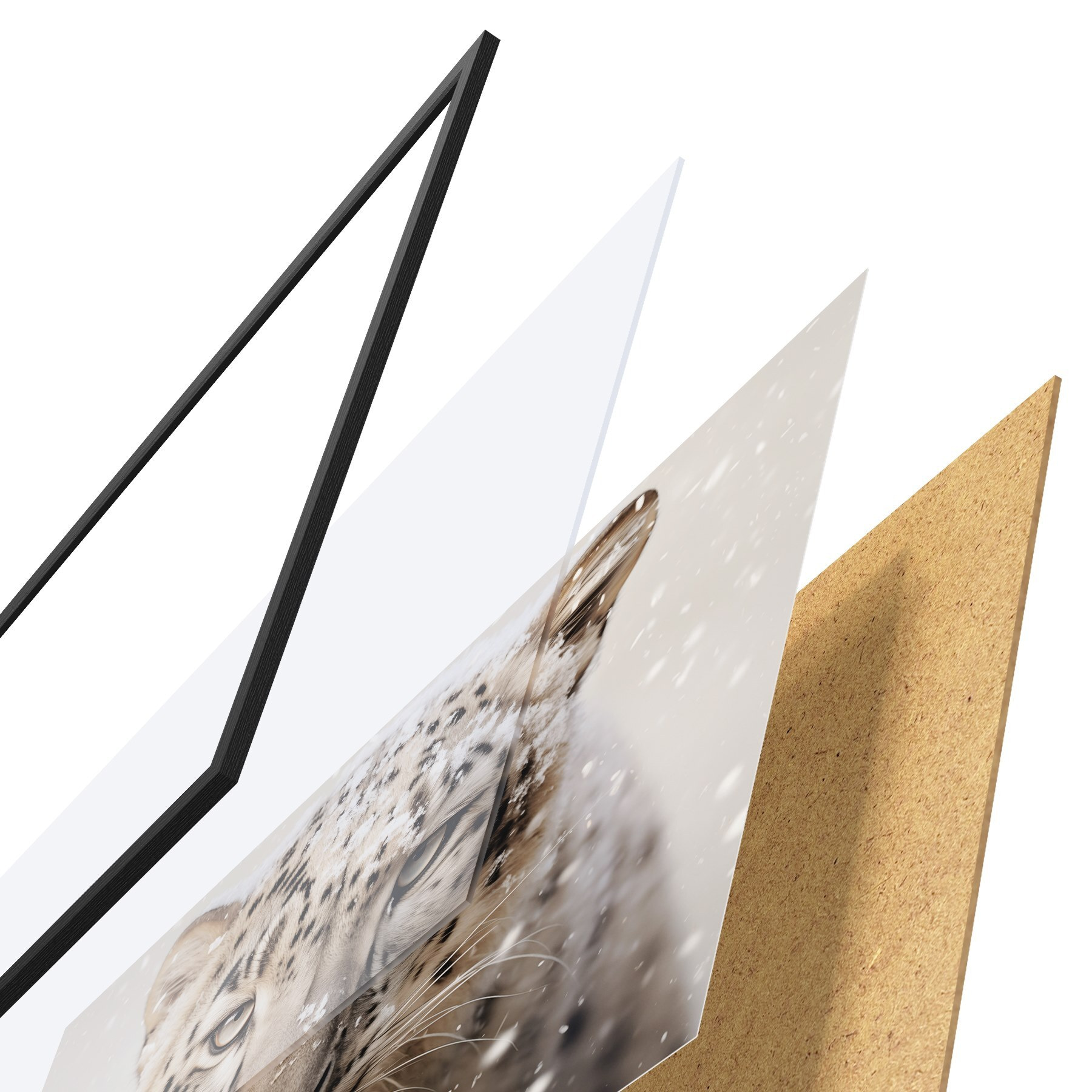 Poster Porträt eines Leoparden unter fallendem Schnee Nr f41434