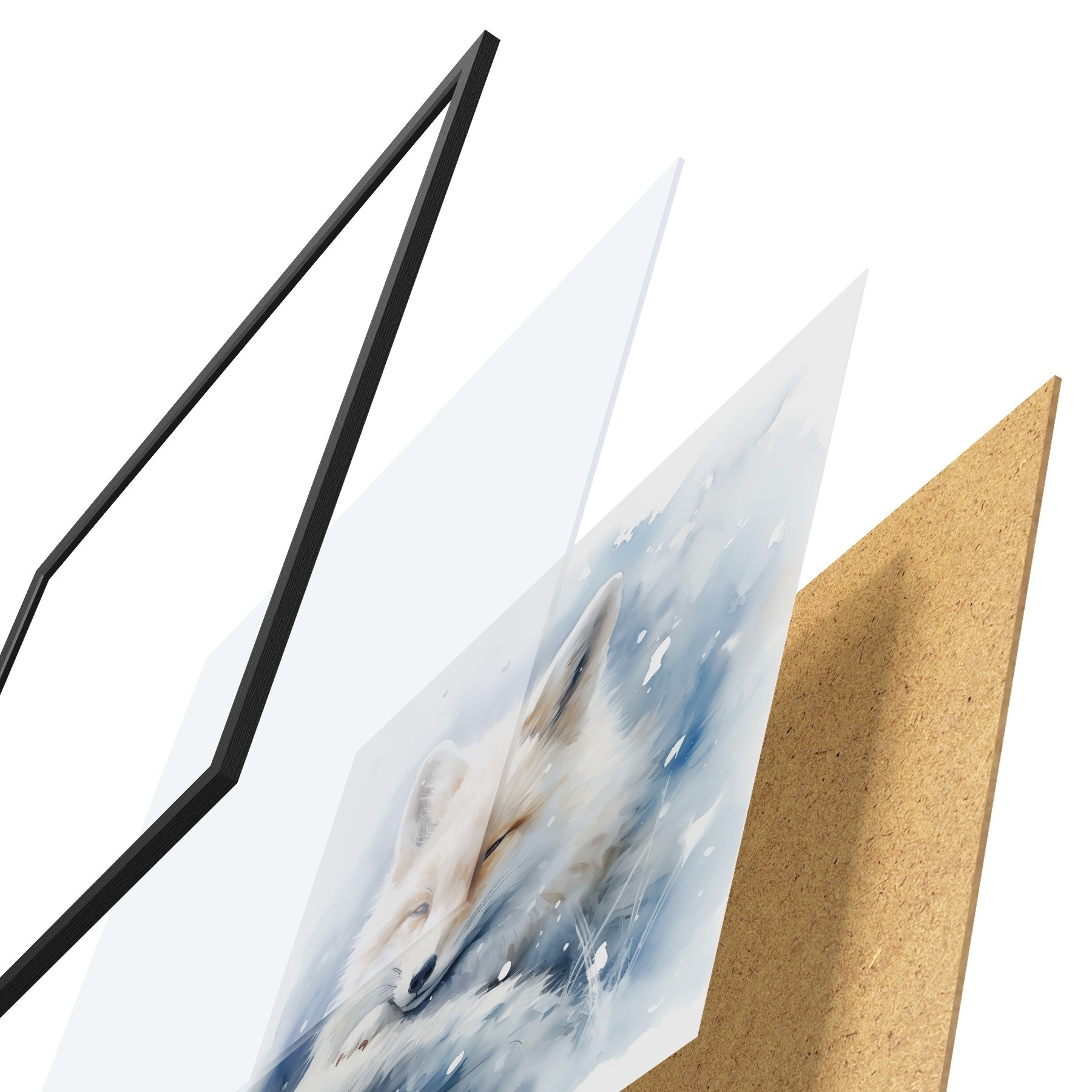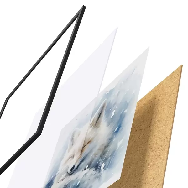 Das Poster besteht aus einem Rahmen, Plexiglas, einem gedruckten Bild und einer Rückwand aus Spanplatten. Dank der Halterungen auf der Rückseite kann das Poster sofort an die Wand gehängt werden.