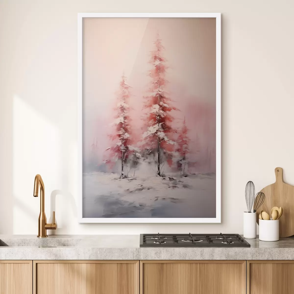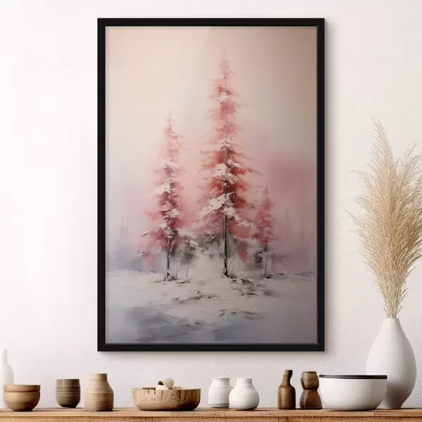 Poster Wintertannen in der Morgendämmerung im Nebel Nr f41470
