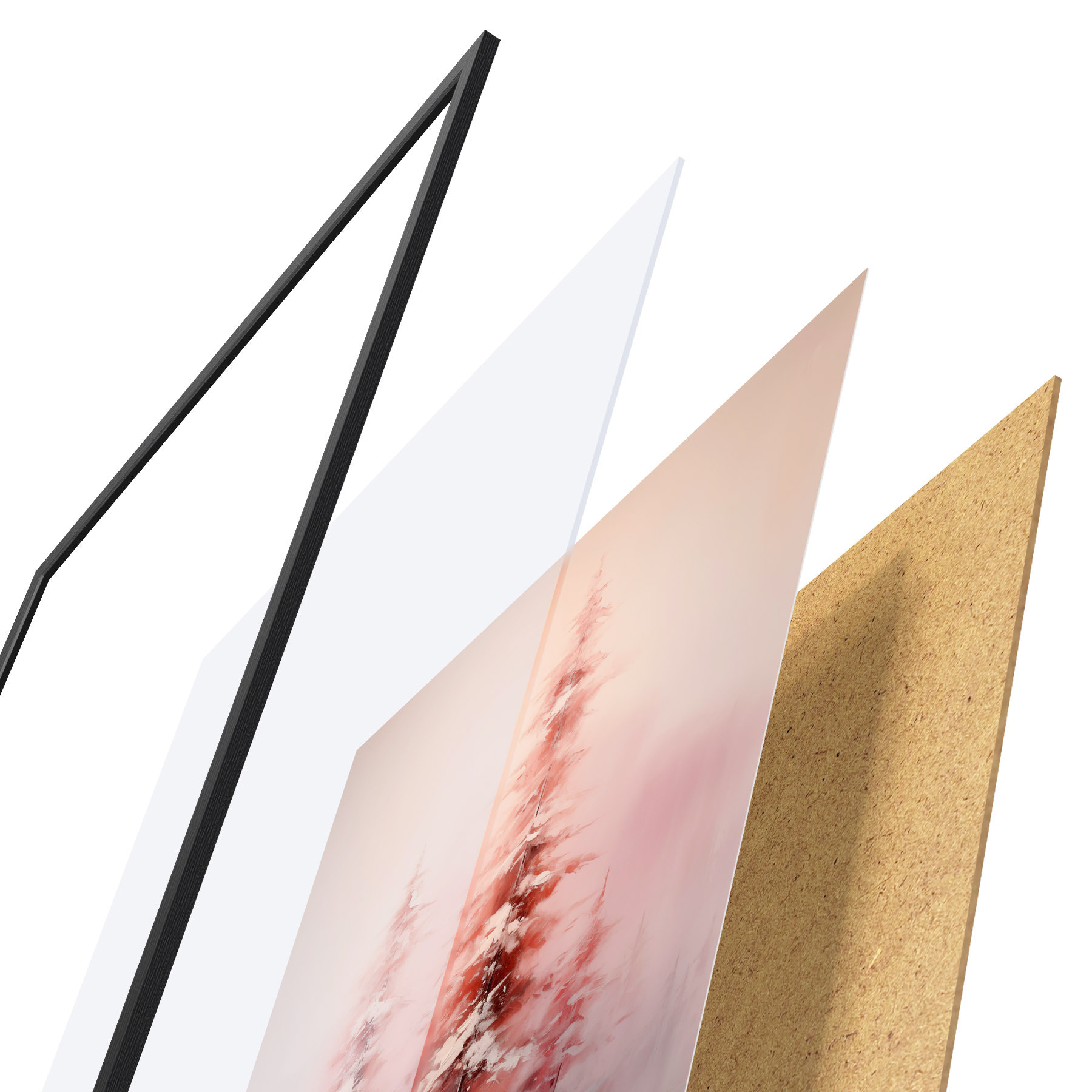 Das Poster besteht aus einem Rahmen, Plexiglas, einem gedruckten Bild und einer Rückwand aus Spanplatten. Dank der Halterungen auf der Rückseite kann das Poster sofort an die Wand gehängt werden.