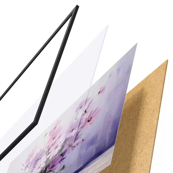 Das Poster besteht aus einem Rahmen, Plexiglas, einem gedruckten Bild und einer Rückwand aus Spanplatten. Dank der Halterungen auf der Rückseite kann das Poster sofort an die Wand gehängt werden.