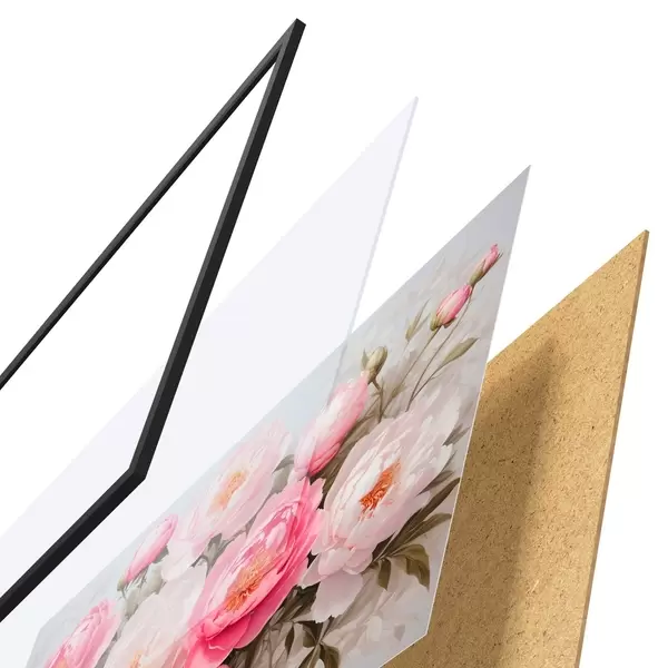 Das Poster besteht aus einem Rahmen, Plexiglas, einem gedruckten Bild und einer Rückwand aus Spanplatten. Dank der Halterungen auf der Rückseite kann das Poster sofort an die Wand gehängt werden.