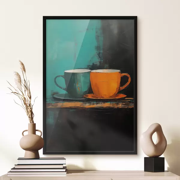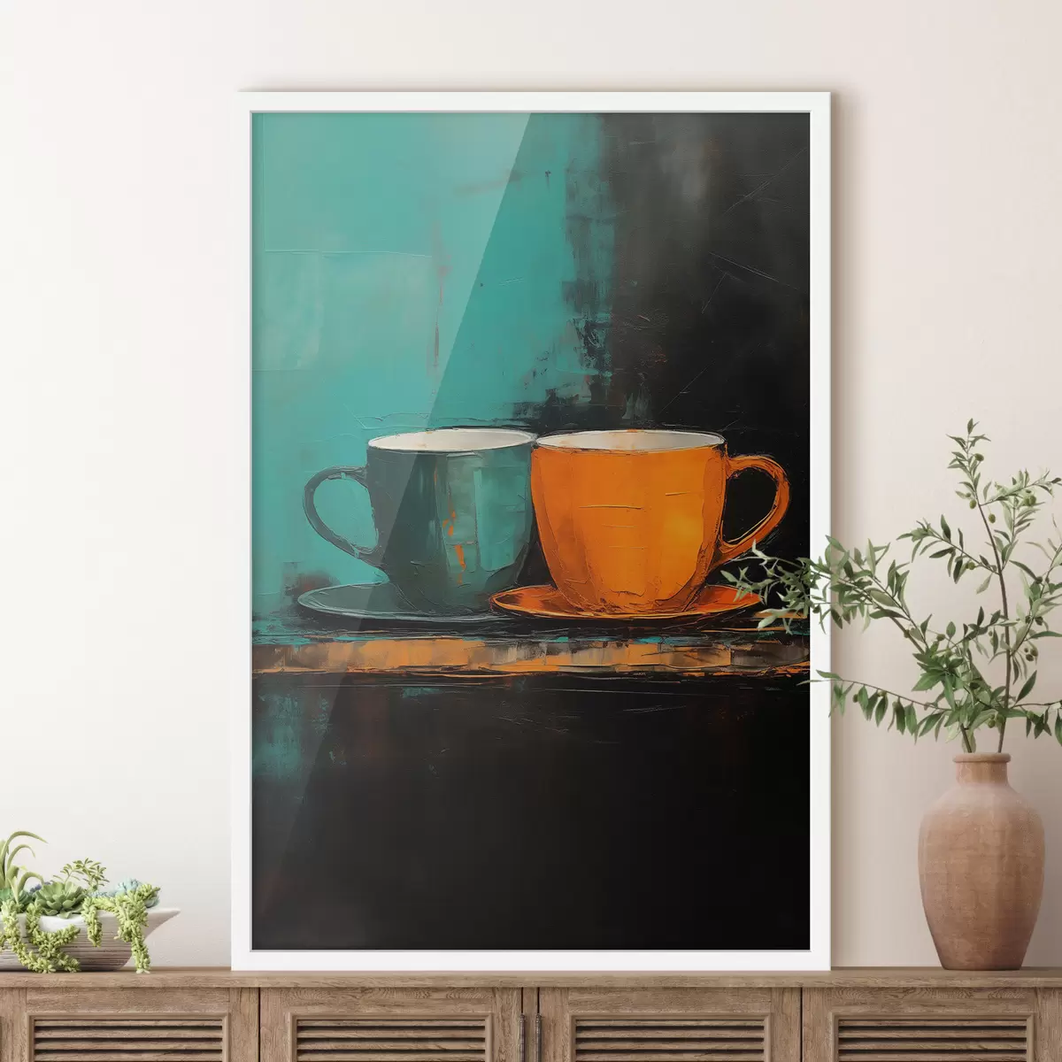 Poster Zwei Tassen Kaffee auf den Tisch stellen Nr f41542
