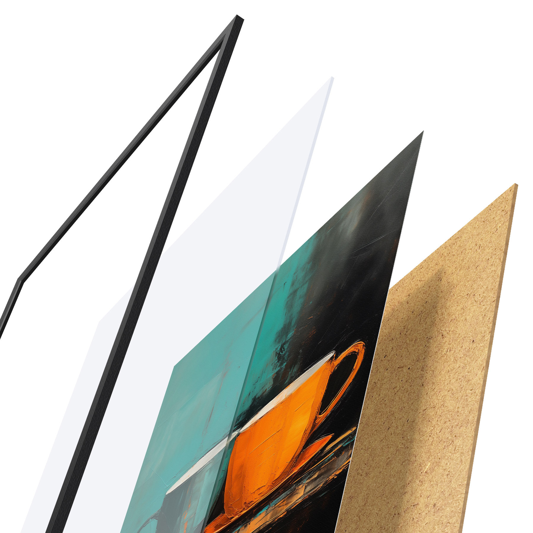 Das Poster besteht aus einem Rahmen, Plexiglas, einem gedruckten Bild und einer Rückwand aus Spanplatten. Dank der Halterungen auf der Rückseite kann das Poster sofort an die Wand gehängt werden.