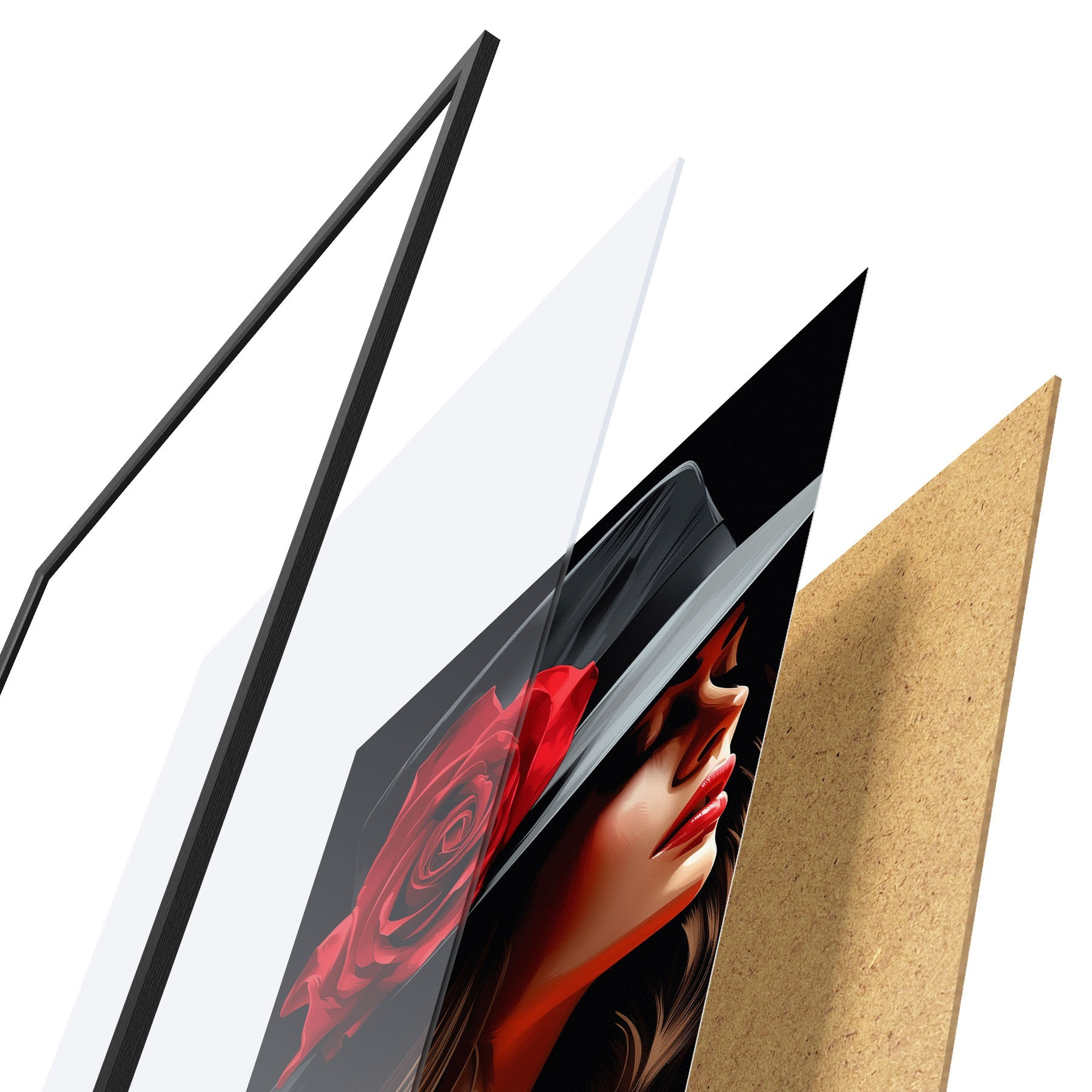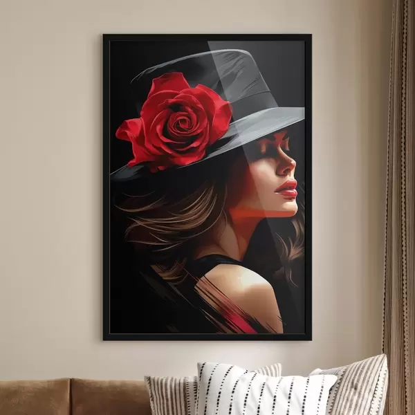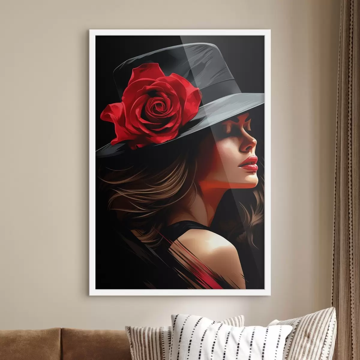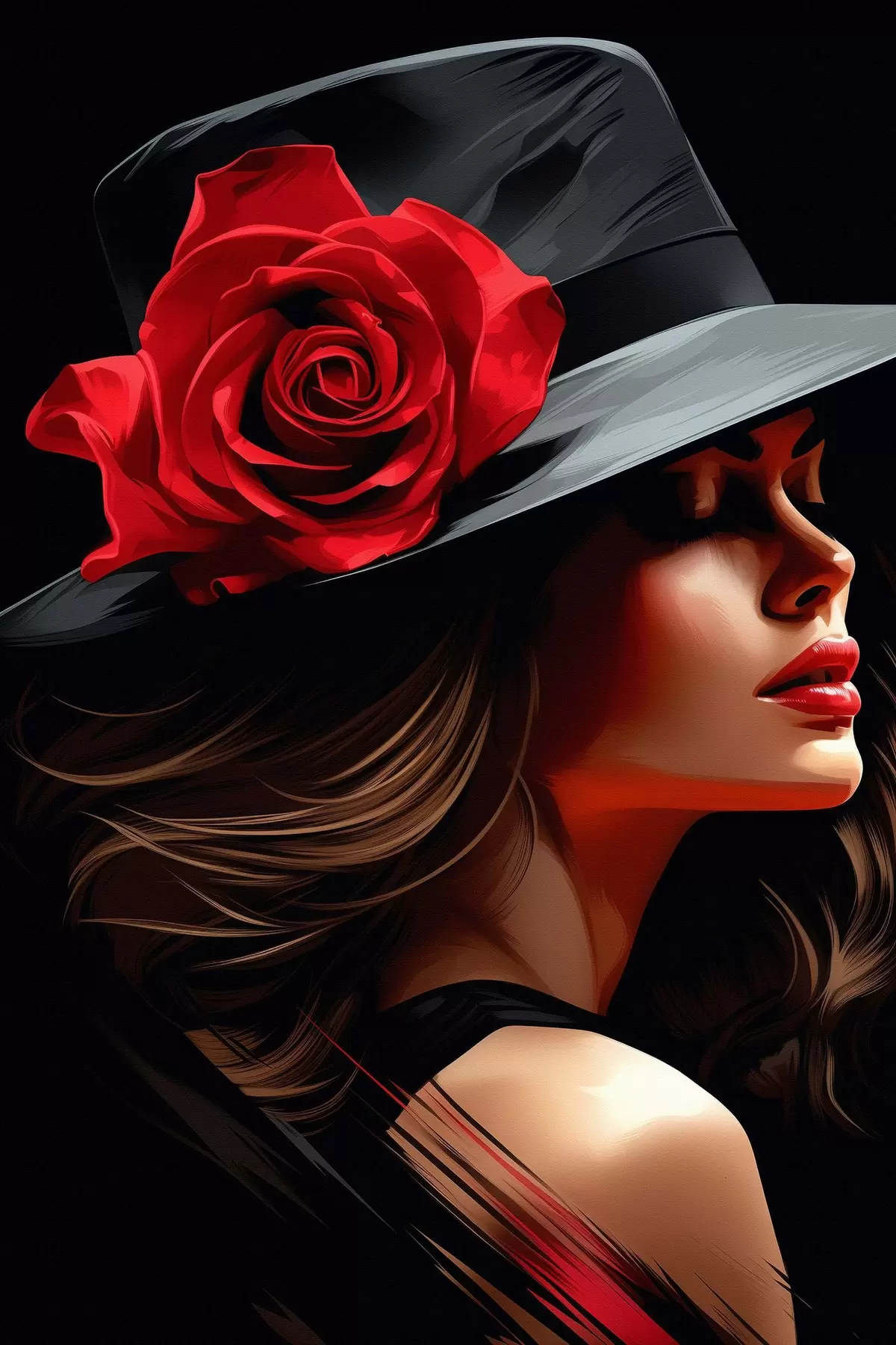 Poster Illustration Mädchen in einem Hut mit einer schönen schicken Rose Nr f41546