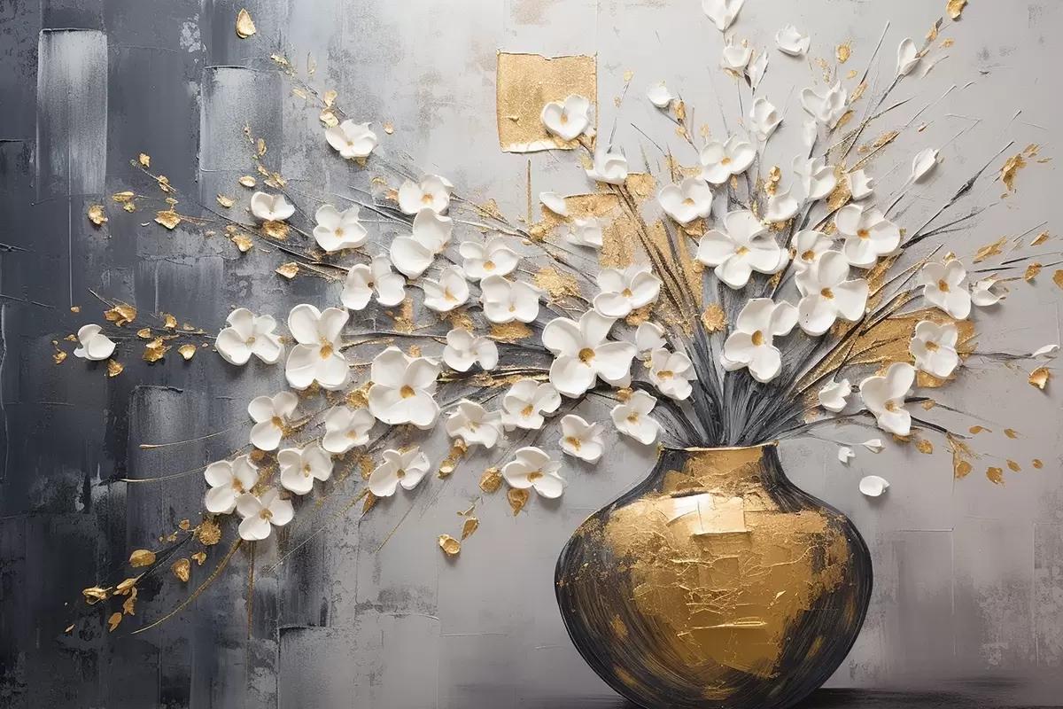 Poster Volumetrische kleine helle Blumen in einer Vase, Nachahmung Ölgemälde Nr f41558
