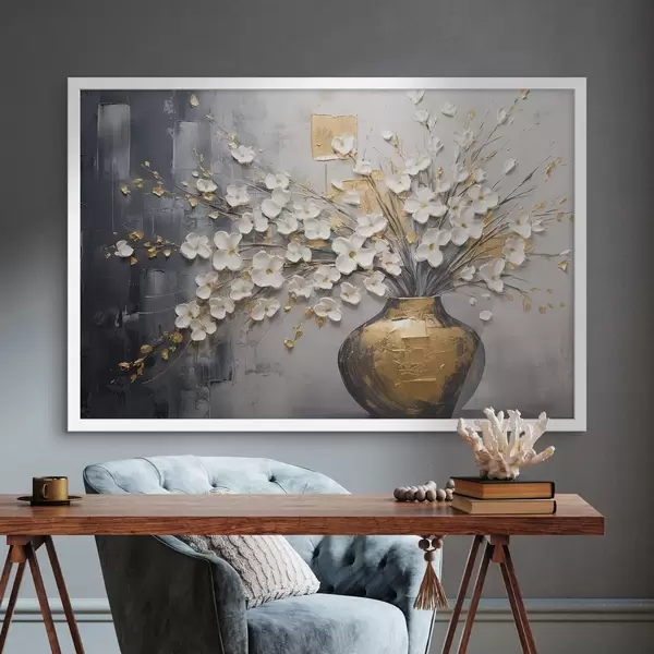 Poster Volumetrische kleine helle Blumen in einer Vase, Nachahmung Ölgemälde f41558