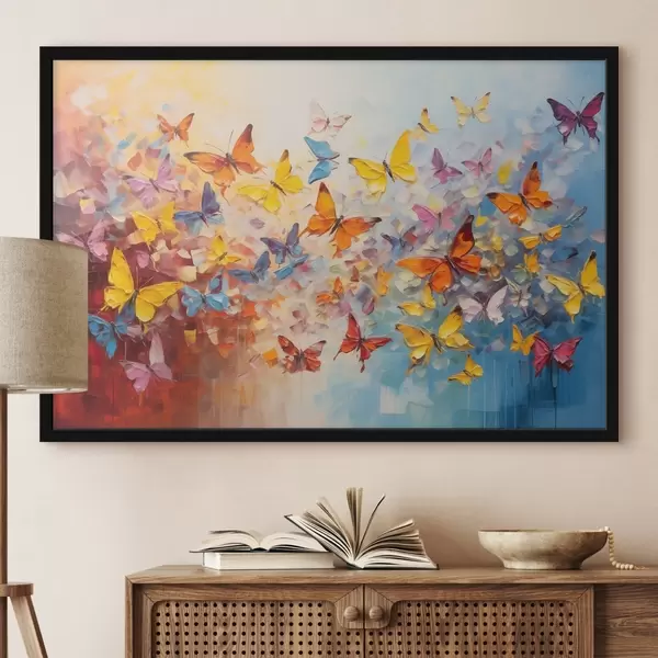 Poster Viele Schmetterlinge mit Farbe f41561