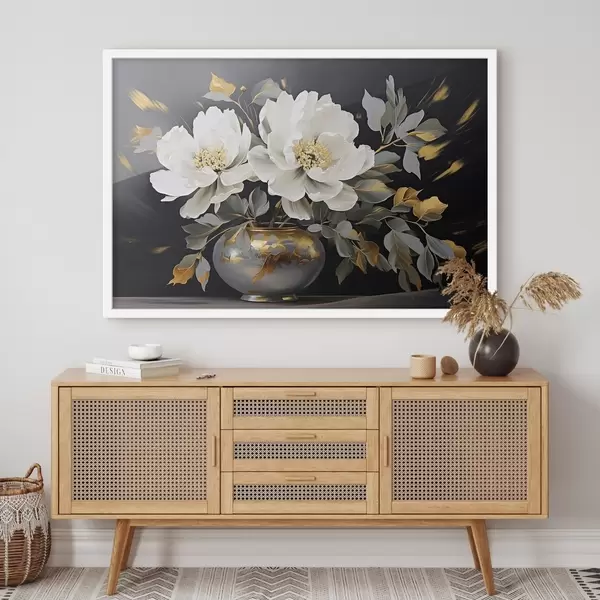 Poster Zarte weiße Pfingstrosen in einer Vase Nr f41568