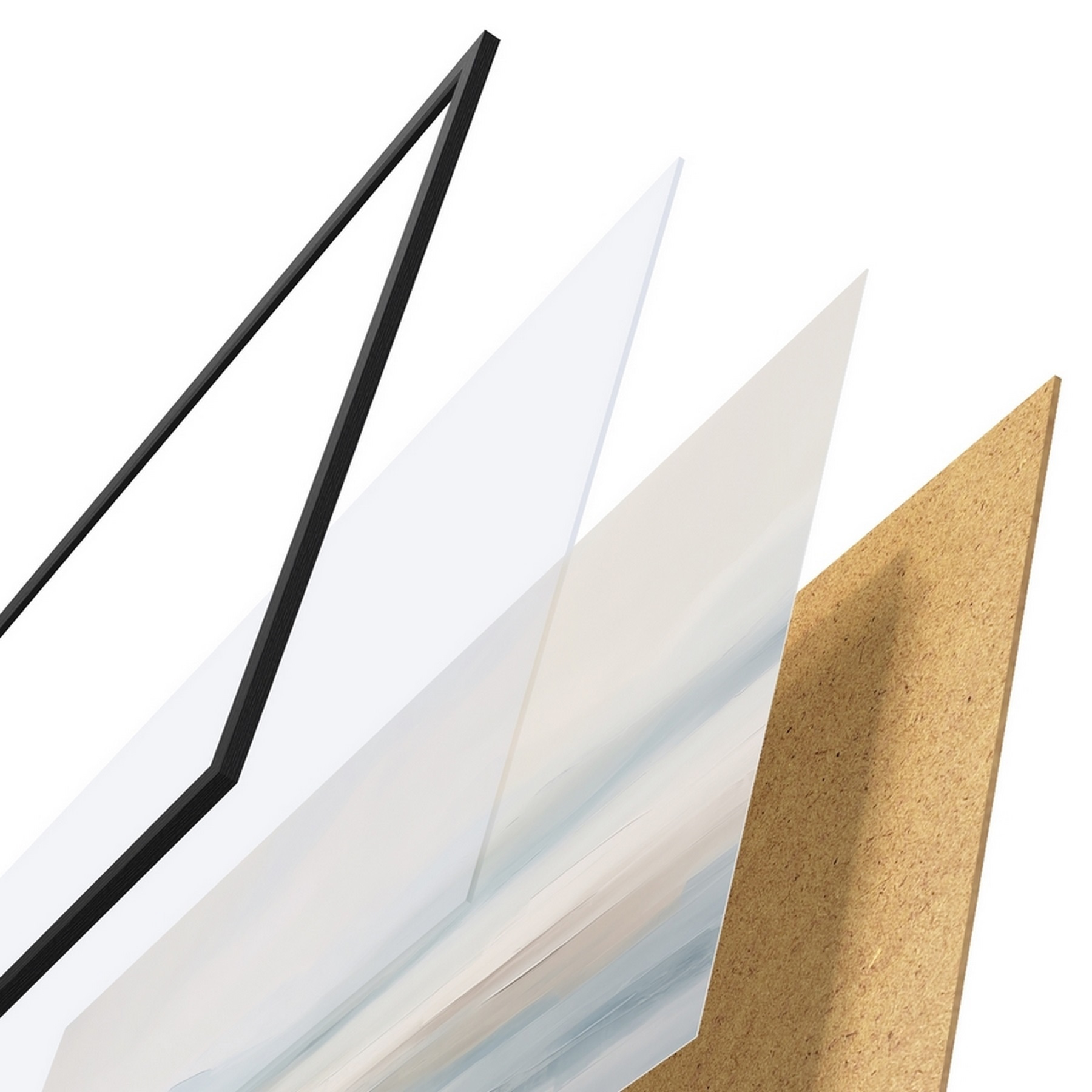Das Poster besteht aus einem Rahmen, Plexiglas, einem gedruckten Bild und einer Rückwand aus Spanplatten. Dank der Halterungen auf der Rückseite kann das Poster sofort an die Wand gehängt werden.