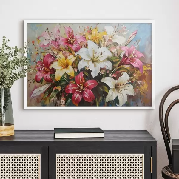 Drei Materialtypen stehen zur Verfügung: Economic Canvas - ein dichtes und haltbares Material für den Digitaldruck, identisch mit Malerleinwand, wasserfeste Oberfläche, realistische Wiedergabe von Details, mittelkörniges Material. Premium Canvas - die Textur ähnelt der einer Malerleinwand (verwobene kleine Fäden). Weiche, detaillierte Wiedergabe des Bildes auf einer matten Oberfläche. Eco-Premium - hochwertiges Gewebe aus 100% Baumwolle. Dank der natürlichen Baumwollfasern ist das Material langlebig und verschleißfest. Hervorragende Farbwiedergabe und Detailtreue.