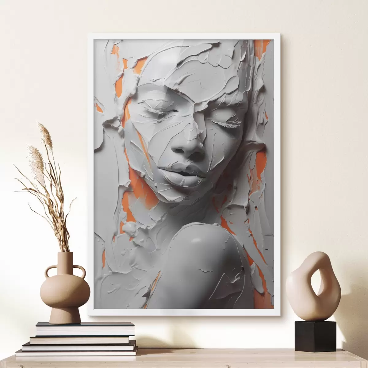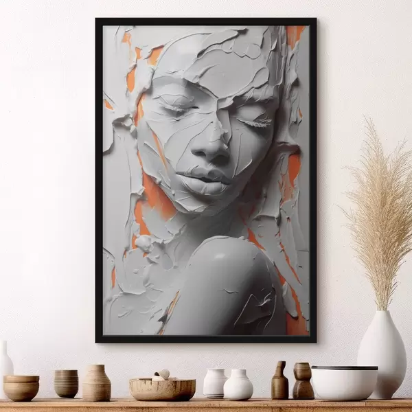 Poster Porträt eines Mädchens in weißer Farbe Nachahmung von Strichen f41657