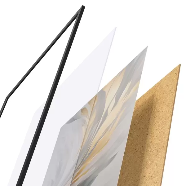 Das Poster besteht aus einem Rahmen, Plexiglas, einem gedruckten Bild und einer Rückwand aus Spanplatten. Dank der Halterungen auf der Rückseite kann das Poster sofort an die Wand gehängt werden.