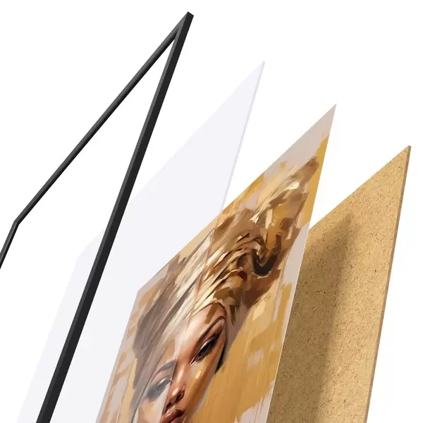 Das Poster besteht aus einem Rahmen, Plexiglas, einem gedruckten Bild und einer Rückwand aus Spanplatten. Dank der Halterungen auf der Rückseite kann das Poster sofort an die Wand gehängt werden.