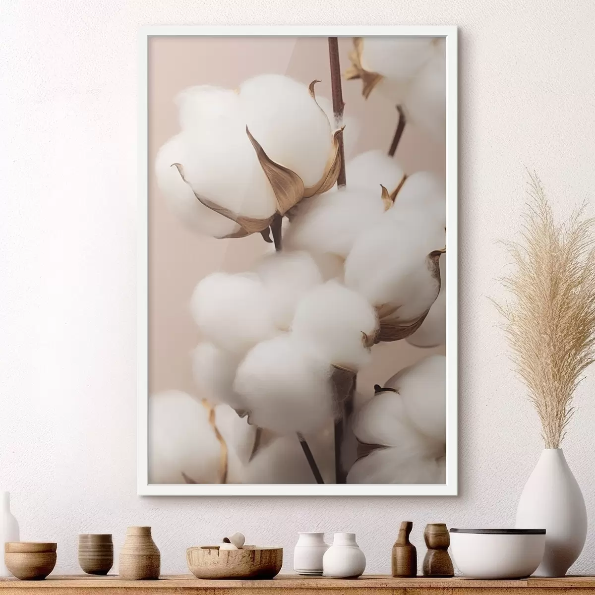 Poster Baumwollblumen auf beigem Hintergrund Nr f41706