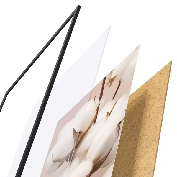 Das Poster besteht aus einem Rahmen, Plexiglas, einem gedruckten Bild und einer Rückwand aus Spanplatten. Dank der Halterungen auf der Rückseite kann das Poster sofort an die Wand gehängt werden.