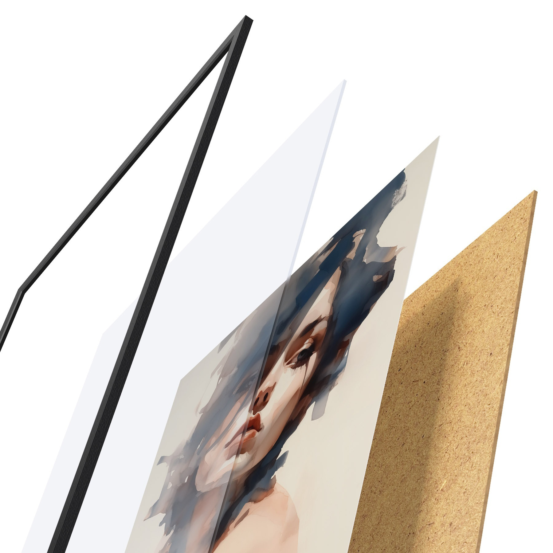 Das Poster besteht aus einem Rahmen, Plexiglas, einem gedruckten Bild und einer Rückwand aus Spanplatten. Dank der Halterungen auf der Rückseite kann das Poster sofort an die Wand gehängt werden.