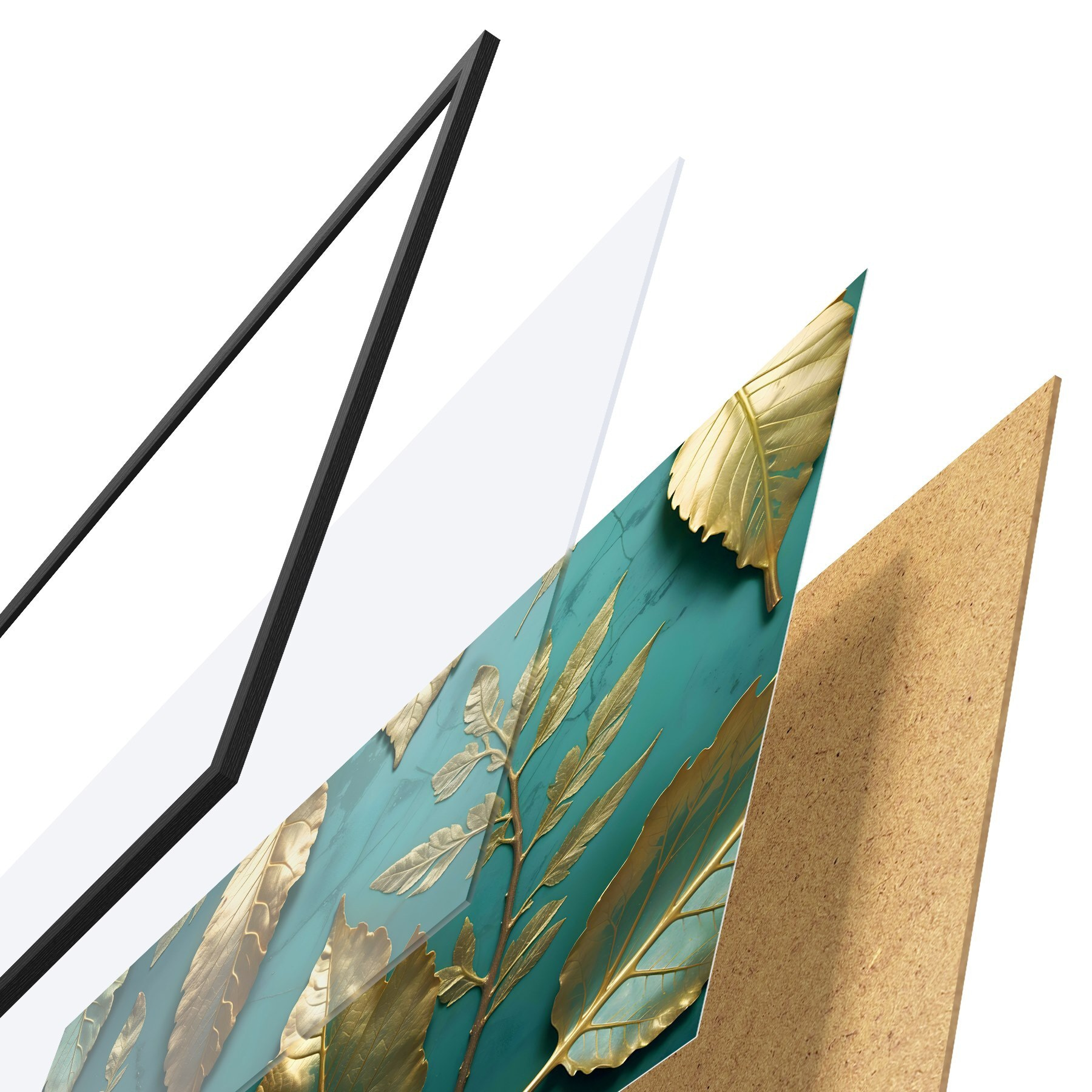 Poster Gelbe, zarte Blätter auf einem blaugrünen Hintergrund - ein eleganter botanischer Druck f41727