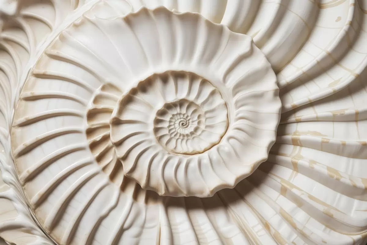 Poster Weiße Spiralmuschel, die ihr kompliziertes und detailliertes Muster zur Schau stellt f41728