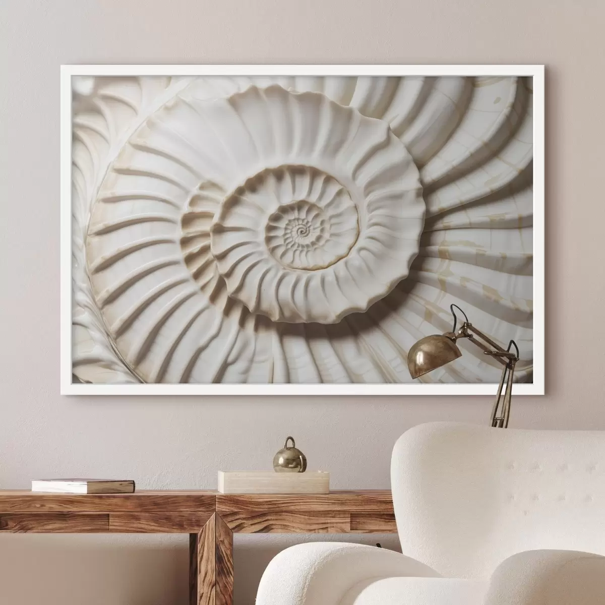 Poster Weiße Spiralmuschel, die ihr kompliziertes und detailliertes Muster zur Schau stellt Nr f41728