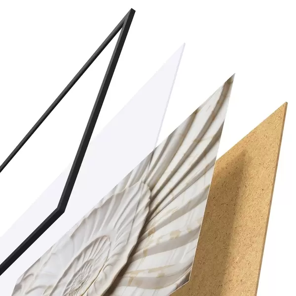 Das Poster besteht aus einem Rahmen, Plexiglas, einem gedruckten Bild und einer Rückwand aus Spanplatten. Dank der Halterungen auf der Rückseite kann das Poster sofort an die Wand gehängt werden.