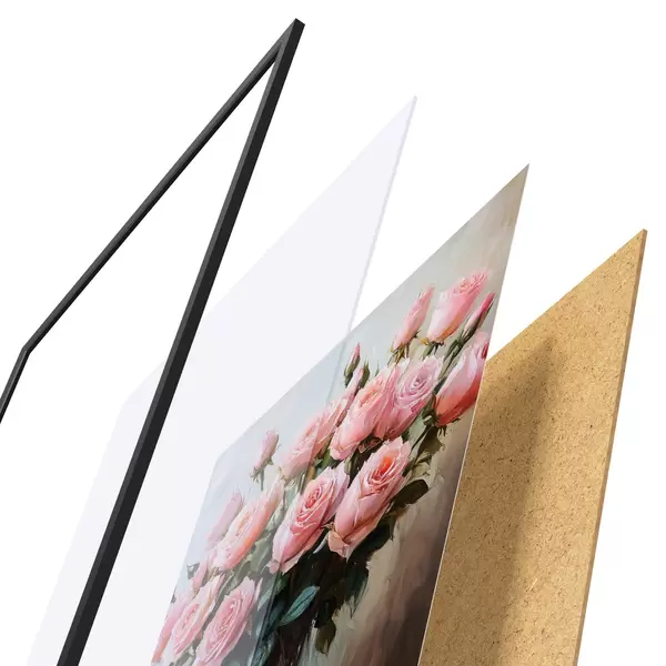 Das Poster besteht aus einem Rahmen, Plexiglas, einem gedruckten Bild und einer Rückwand aus Spanplatten. Dank der Halterungen auf der Rückseite kann das Poster sofort an die Wand gehängt werden.