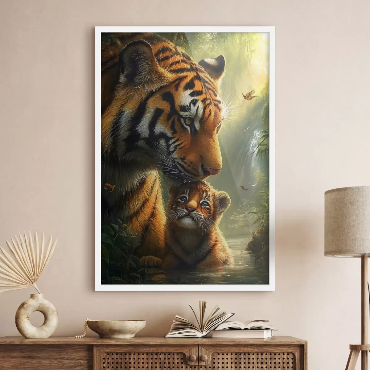 Poster Tiger und Tigerjunge im Dschungel f41760
